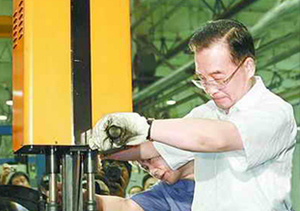 溫家寶總理考察發(fā)動(dòng)機(jī)廠家時(shí)操作大連德欣擰緊機(jī)設(shè)備 CCTV“贏在品牌”頒獎(jiǎng)儀式